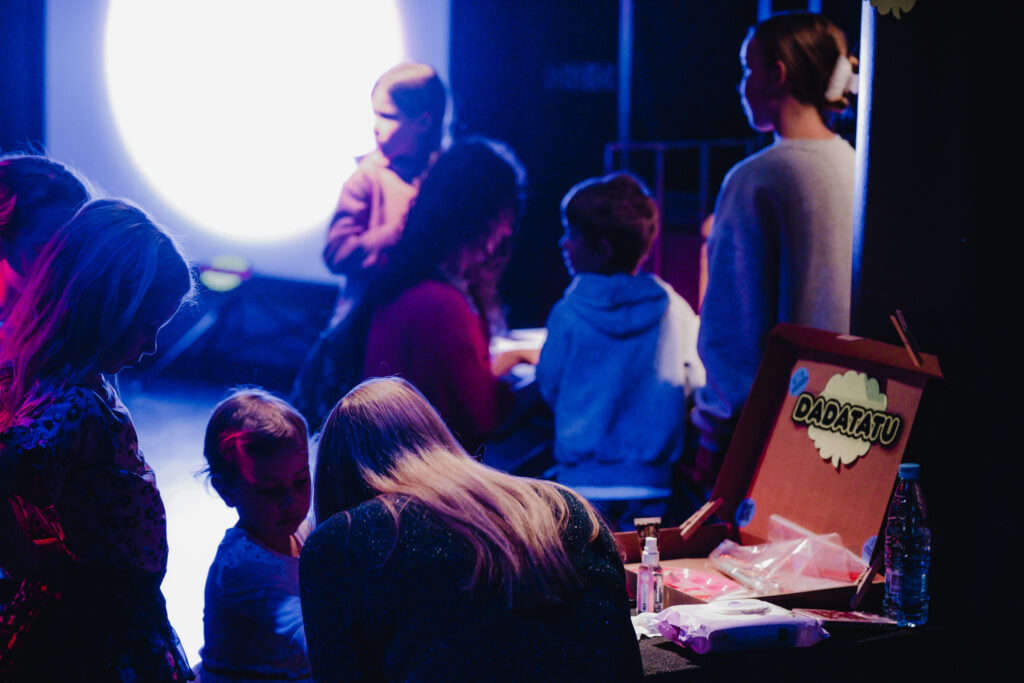 DadaTatu je postojanka, kjer se mladi in stari plesalci pripravijo na DadaDisko utrip – z UV tatuji, bleščicami in igrivimi vzorci na koži.